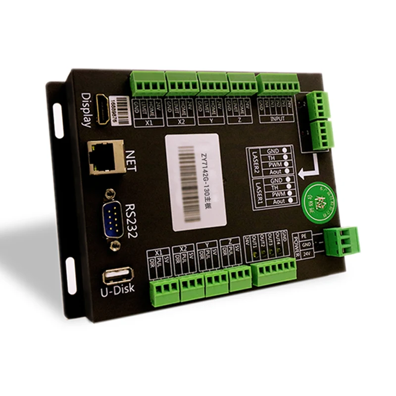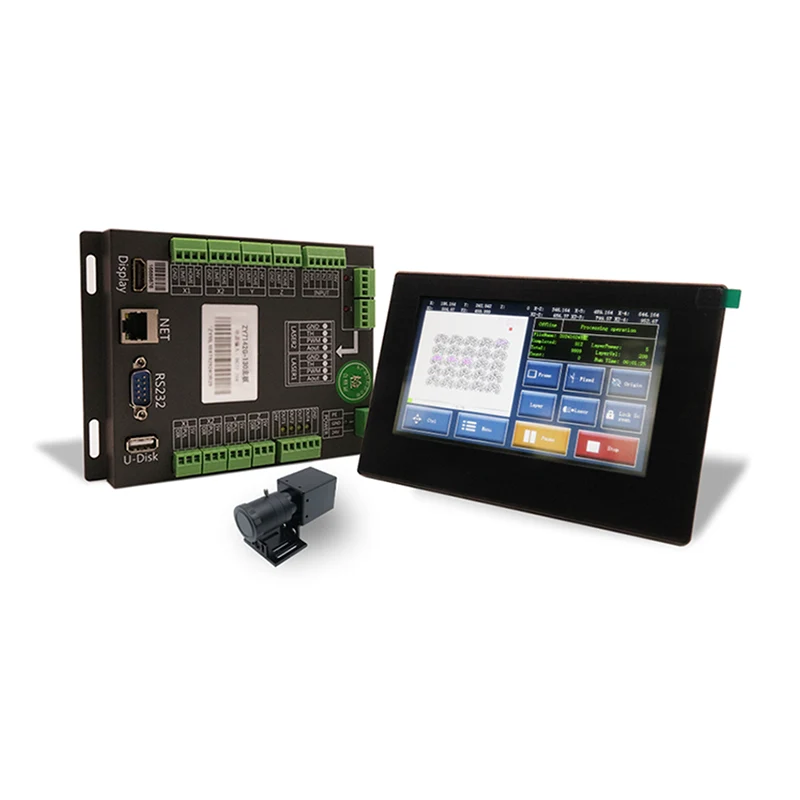 Úsáideann an Bord Rialaithe Léasair Amharc-shuíomh ceamara tionsclaíoch 1.3-megapixel, ar féidir leo teimpléid le haghaidh gearrtha a aithint agus a ailíniú go cruinn. Tacaíonn an córas seo le rialú 4-ais agus tá sé feistithe le scáileán tadhaill 7-orlach, rud a chumasaíonn oibriú agus rialú éasca. Tacaíonn sé leis an bhfeidhm aitheantais il-teimpléad, rud a ligeann dó teimpléid iolracha a phróiseáil go comhuaineach agus gearradh ardchruinneas a chinntiú.